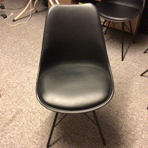 Den ene stol kan godt finde på at larme, når man læner sig tilbage, men har endnu ikke oplevet ulykker med den alligevel :)