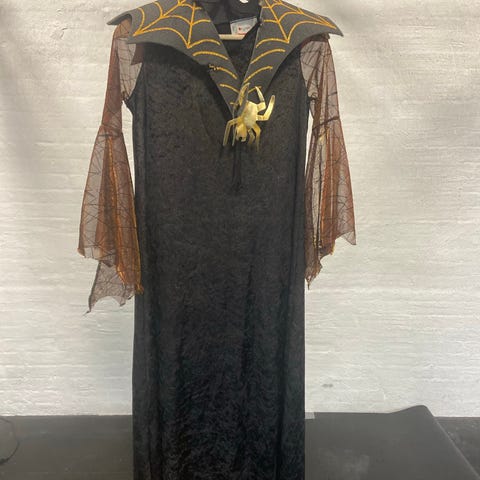 Boland Ridder Kostume til mand bestående af kjortel med dragemotiv, hætte, handsker, bælte og guldkronet hovedbeklædning. Kostumet er designet til brug ved udklædning eller temafester.