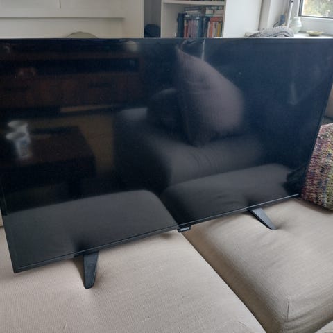 Der er en meget lille ridse i skærmen, men den ses ikke, når TV’et er tændt eller i brug.