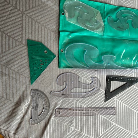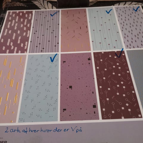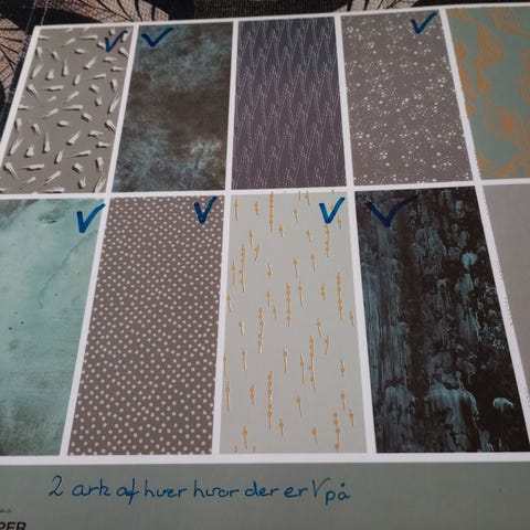 Ca. 50 ark tegnepapir, halvdelen med grøn på den ene side. Måler ca. 69x50 cm