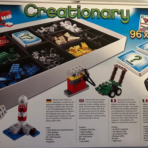 Meget fin stand. LEGO Creationary brætspil til børn fra 7 år og op. Spillet indeholder forskellige LEGO-klodser og en spillevejledning. Designet til at stimulere kreativitet og leg med LEGO-elementer.