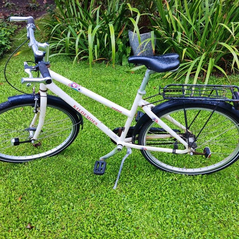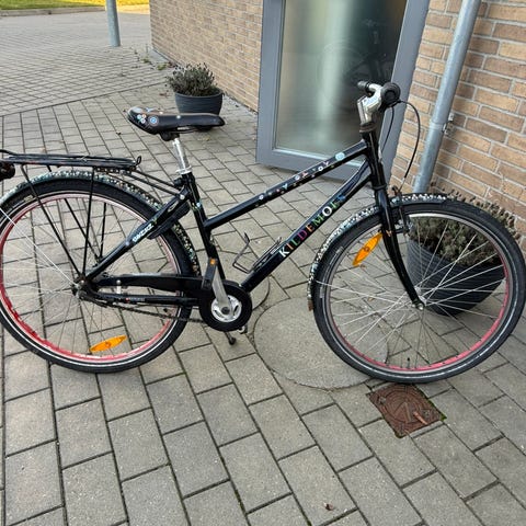 26 tommer, fin stand som har stået inde i opvarmet skur, 3 gear og fodbremser.