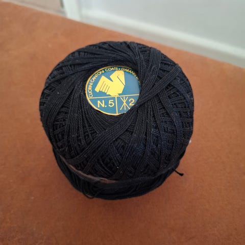 Lurex garn i guld farve, lavet af 100% polyester. Jeg har brugt en lille smule af det