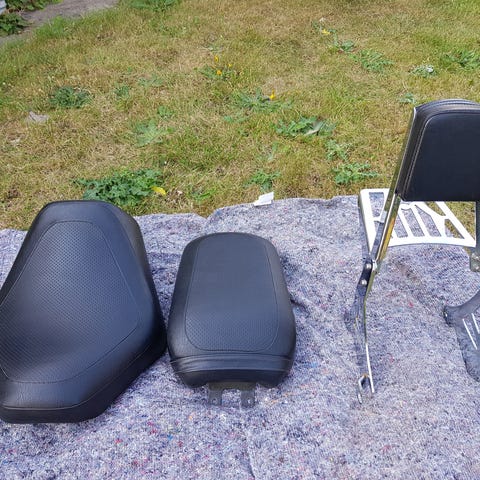 Sæder, Suzuki Savage, Originale sæder pris forsæder 450 kr og bagsæder 250 kr. Ombetrukket med nyt betræk + 550 kr pr stk. Det nye brune retro sæde 1000 kr.