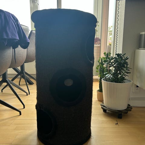 Lettere brugt Karlie kradsetønde Caverna i flettet vandhyacint. Et praktisk og pladsbesparende kradsemøbel til katte. Tønden kombinerer kradseflade, polstret udsigtsplatform samt to hyggelige huler til leg, gemmeleg og søvn. Robust og naturlige materiale velegnet til daglig klopleje. Kradsetønden er samlet.