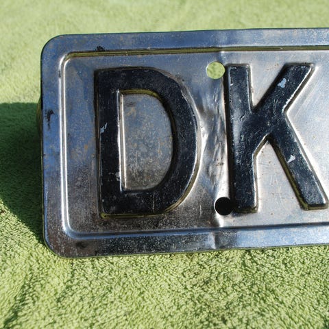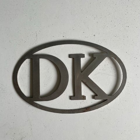 DK skilt i metal, har aldrig været monteret, men ligget i et kælder skab i rigtig man år.