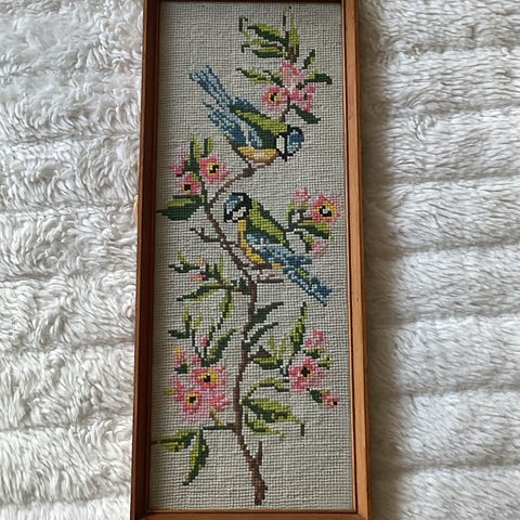 To kinesiske billed broderier. Fint håndværk med mange detaljer og flotte farver broderet på silke.