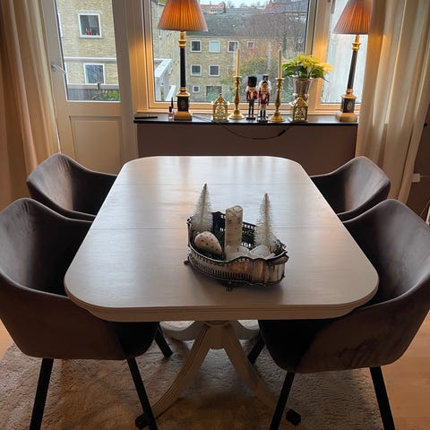 Alle stole er meget lidt brugt og fremstår som nye – ingen pletter, slid eller skader. Har primært stået i hjem uden rygning og kæledyr.