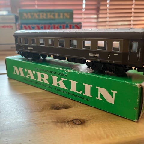 Märklin personvogn fra de belgiske jernbaner, første udgave, i sjælden god stand uden brugsspor og i rimelig pæn æske. Kan afhentes i Brøndby Strand