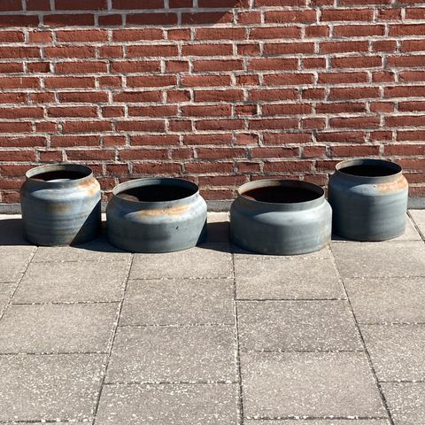 Trætønde/plantekrukke til udendørs brug. Fremstillet af træ med metalbånd - diameter ca 64cm.