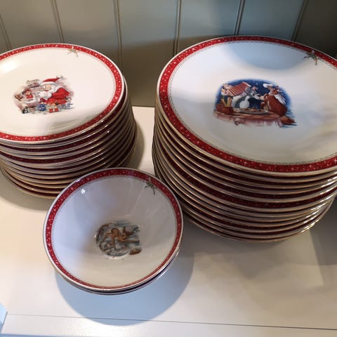 Mickey Mouse porcelæn sæt til 12 personer som kan bruges til fint selskab.