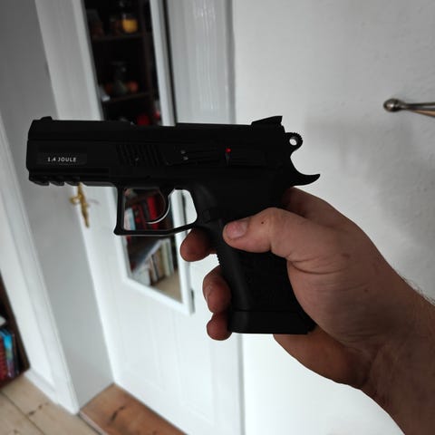 Hardball revolver, der medfølger 6 patroner. Kører på CO2. Har ligget i en kasse i et par år.
