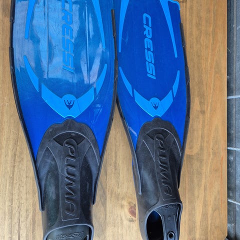Cressi Frog Plus svømmefødder i blå farve, størrelse X-Large. Fremstillet af holdbare materialer, designet til effektiv svømning og dykning.