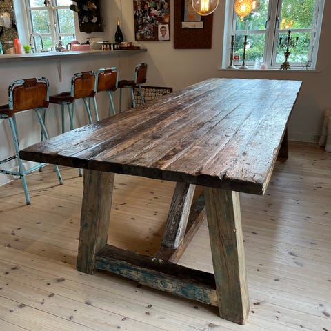 Stort og rustikt spisebord med plads til alle