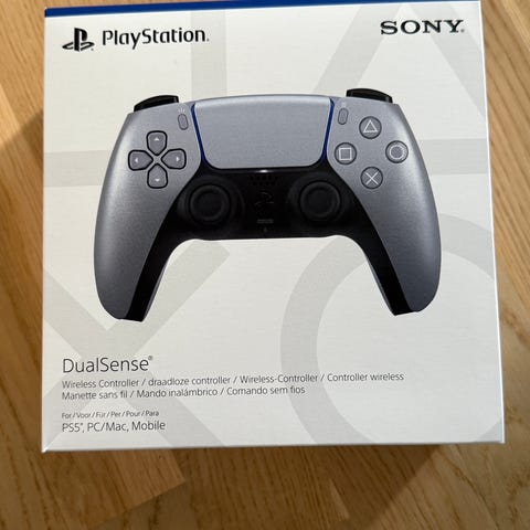 Sony PlayStation DualSense trådløs controller i sort farve. Controlleren har standard knapper og analoge sticks, designet til brug med PlayStation konsoller.