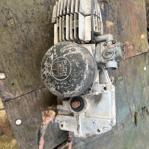 Det er en dansk Puch Maxi E50 Kickstart motor med følgende opsætning: