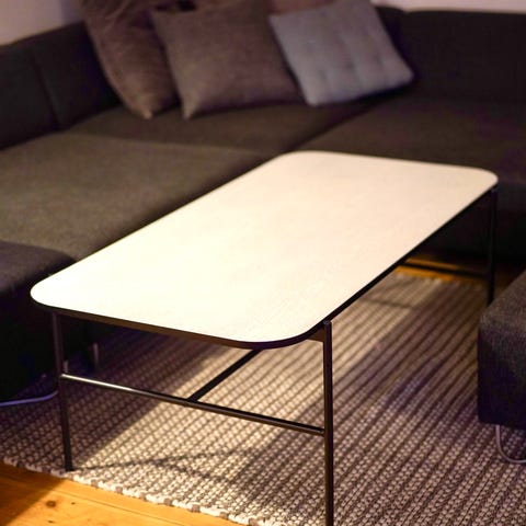 Sofabordet har en praktisk hylde under bordpladen, som giver ekstra opbevaringsplads til f.eks. bøger, magasiner eller fjernbetjeninger.