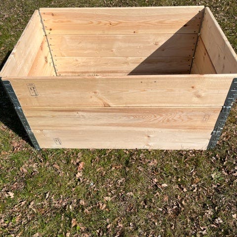 To pallerammer, en plade og en halvpalle til opsætning af et højbed (som på de to andre billeder) sælges.
