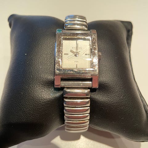 Skagen dameur med mesh-rem i metal. Uret går og er i meget fin stand.