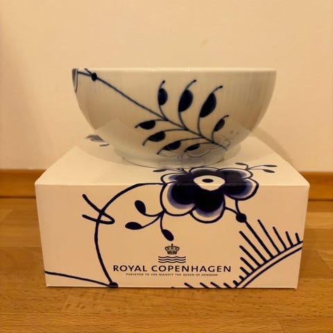Helt ny og ubrugt skål fra Royal Copenhagen i serien Blå Mega Riflet. Klassisk og moderne musselmalet mega design i porcelæn. Modtaget i gave, men sælges da størrelsen ikke passer behovet. Aldrig brugt. Perfekt stand i æske.