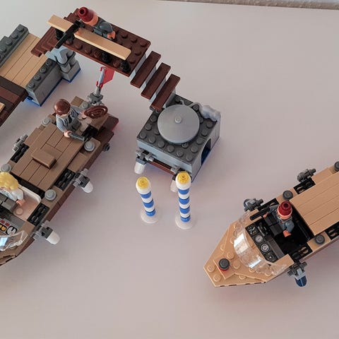 LEGO Indiana Jones LEGO Theme flysæt inkluderer et fly, 6 minifigurer og tilbehør. Komplet i klodser, minifigurer og vejledninger. Ingen kasse. Der er lidt misfarvninger på klodser på begge vinger, ses på billederne 1 og 3.