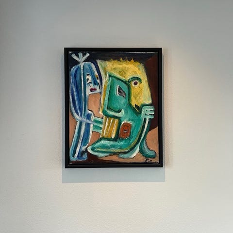 2 flotte akrylmalerier af Bent Eli - akryl på lærred - 80 x 100 cm.- PRIS - ( udstilling år 1995 - 8500 kroner ) - NU kun 345 kroner pr. stk. afh. i Herning + evt. levering ?