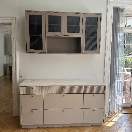 Virkelig stilfuld skænk med tilpasset glasplade fra glarmester ovenpå. Som ny.