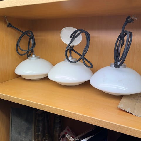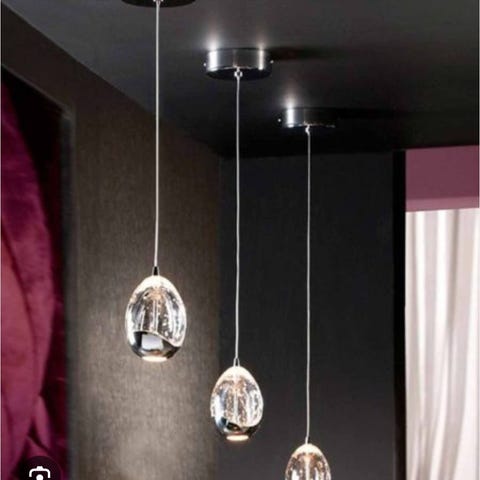 Loftslampe. Meget smuk. Tre stk til salg. Hænger super flot og ‘oplysende’ i en gang eller entre. - evt over et spisebord. Prisen er pr stk.