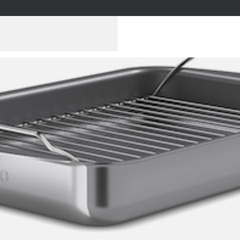 Eva Trio bradepande i stål med rist, str. 35x25 cm, aldrig brugt og stadig i original emballage, dog har en enkelte mindre ubetydelige ridser udvendigt på den ene side fra opbevaring (se billedet).