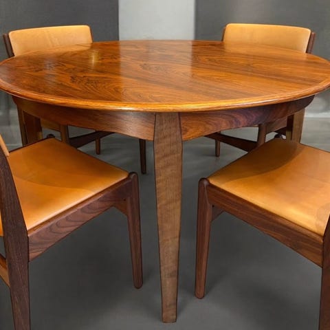 Spisebordet er produceret i fineret palisander, med 3 tillægsplader samt et nedfalds ben.