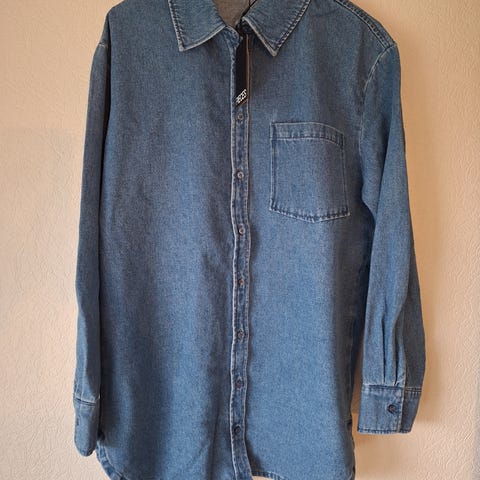 Denimskjorte i størrelse 01. Min egen skjorte på billede 1, farven er dog lys blå som på de efterfølgende billeder.