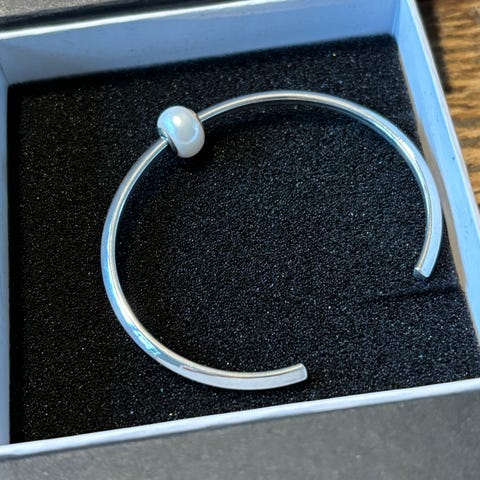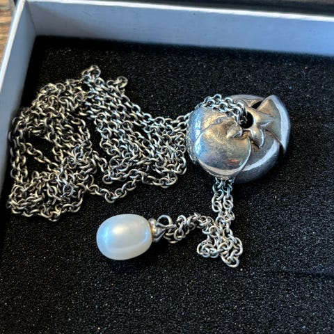 Halskæde med ferskvandsperle. Ca. 90 cm. Mærke: Trollbeads. Troldekugle.