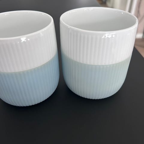 Royal Copenhagen contrast krus i farverne skovgrøn og lichen sælges. Kopperne er brugt nogle gange men fejler absolut ingenting.