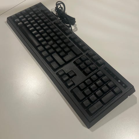 Tilstand: Tastaturet er en smule slidt, men fungerer som det skal. Perfekt til en, der leder efter et billigt gaming- og arbejds-tastatur.