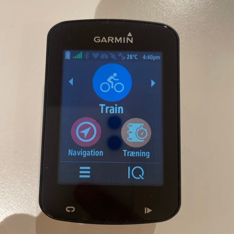 Garmin Edge cykelcomputer Enheden har en berøringsskærm og er designet til cykelbrug, hvilket gør det muligt at spore ruter, hastighed og andre cykelrelaterede data. Enheden er sort og har en robust ydre beskyttelse.