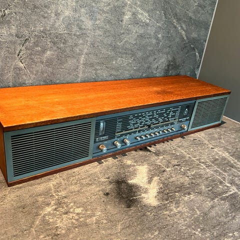 Radio fra Bang & Olufsen. Model beomaster 901. Den fremstår flot og velholdt. Den kan tænde og der er lys i det ene stereo display.