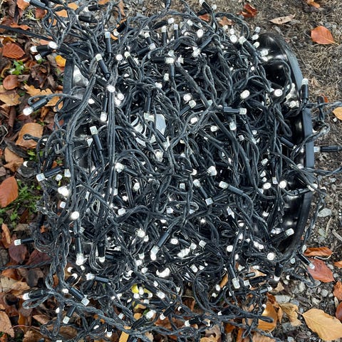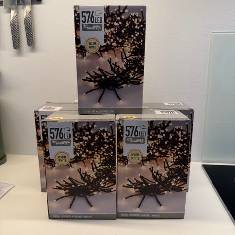 3 kæder istapper der lyser en smule svagere. Ses kune sammenlignet med de 3 andre. 24 meter