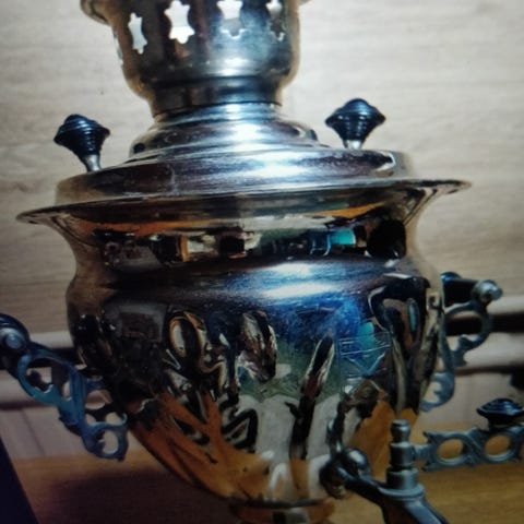 Dette er en elektrisk samovar, der bruges til at koge vand og brygge te. Den koger vand meget hurtigt og er meget smuk tilføjelse til indretningen