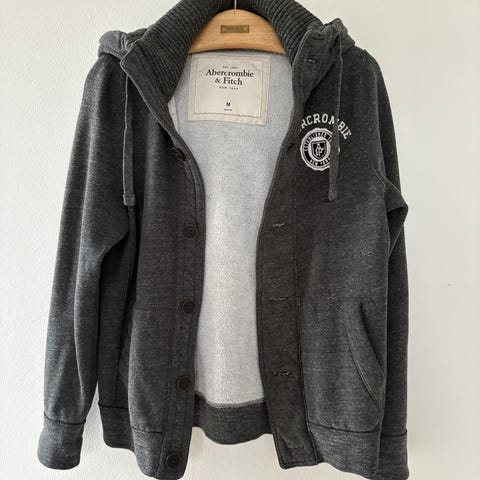Abercrombie & Fitch str M, hoodie jakke, lysegrå, købt i KBH, Købmagergade.