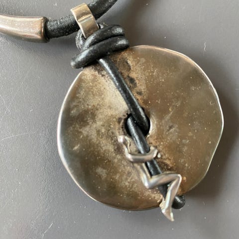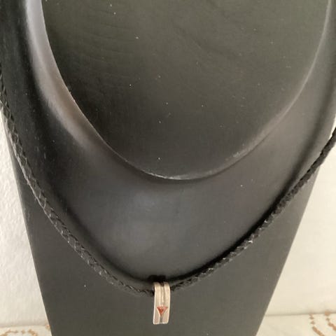 Læderhalskæde der kan indstilles i str. Dog Max 60 cm. Med stor hvid barok kulturperle dekoreret med orange blomst.