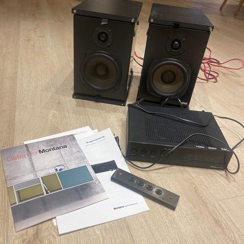 1 stk sengegavl og 2 stk sengeborde fra Montana i farven antracit. Enkelte brugsridser i sengeborde som på billed.
