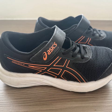 Asics børnesko i unisex design, størrelse 33. Skoene er i en kombination af blå og orange farver, hvilket giver et friskt look. De er velegnede til både indendørs og udendørs brug, og deres solide sål sikrer godt fodfæste.