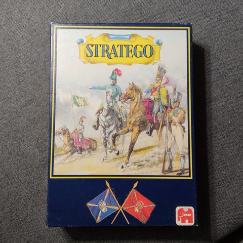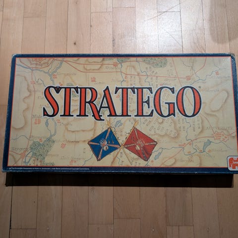 Vi sælger dette meget velholdte Stratego ,den version med stort bræt og kraftige brikker.