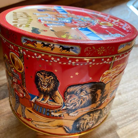 Dåse med søde motiver. Oprindeligt brugt til tuscher.
