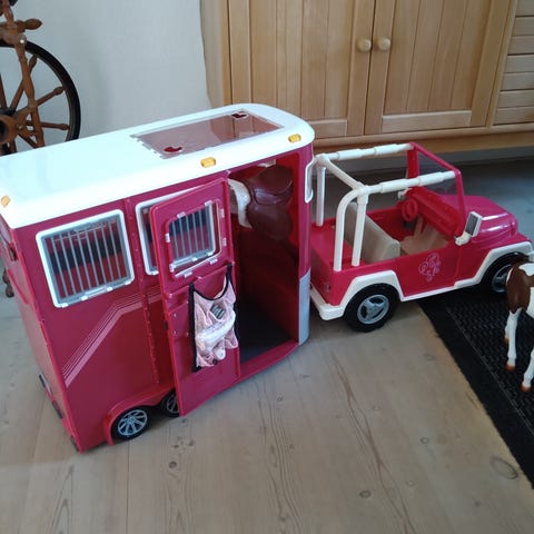 Blandet our generation legetøj , blandt andet hest med sadel, pølsevogn , dukke og picnic bord
