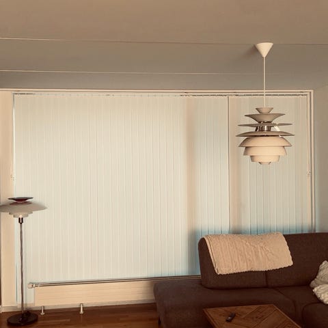 Loftlampe, Pendel, hvid med krom, perfekt over spise bord. Købt omkring 2010, uden synlige brugsspor, hvid stofledning, ca. 2,5 m påmonteret LAMPEN KAN IKKE AFHENTES FØR EFTER 6. JANUAR
