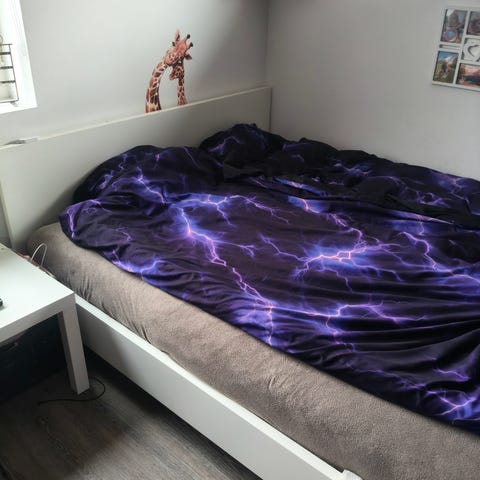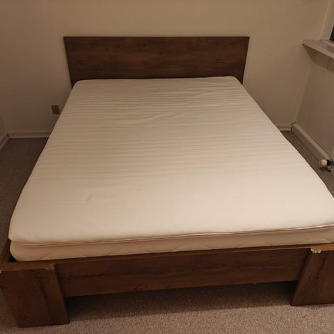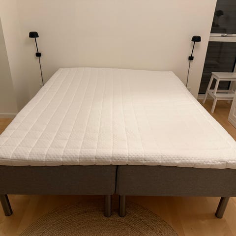 Ingen huller eller pletter, betræk til topmadras samt sengeramme er nyvasket.