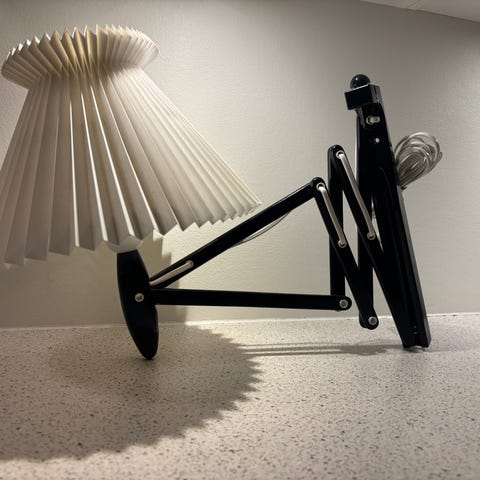Stikkontakt var lige ved siden af lampen, så der er meget kort ledning på, så jeg tog en lysdæmper, der lige var ved hånden og monterede den på ledning, hvor der er en afbryder.