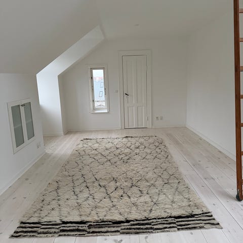 Perfekt til dig, der elsker autentisk berberhåndværk og et tæppe med sjæl, varme og et kunstnerisk udtryk.