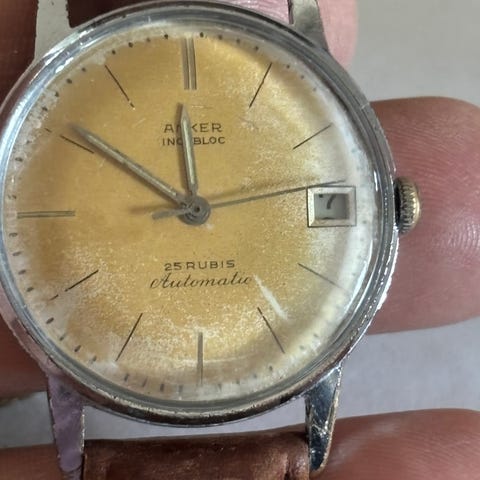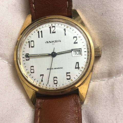 Originalt vintage Anker 100 med rent Bauhaus / Max Bill-inspireret design og minimalistisk urskive. Klassisk europæisk design fra midten af det 20. århundrede.